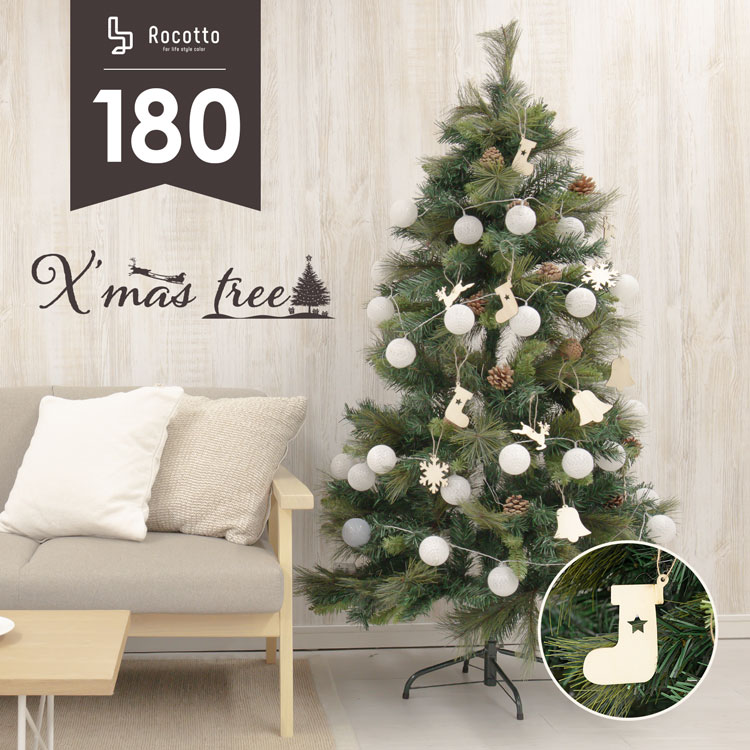在庫限り クリスマスツリー セット 180cm 飾り 木製オーナメント 付き 2023年モデル Rocotto 家庭用 おしゃれ かわいい 北欧 人気 おすすめ 送料無料