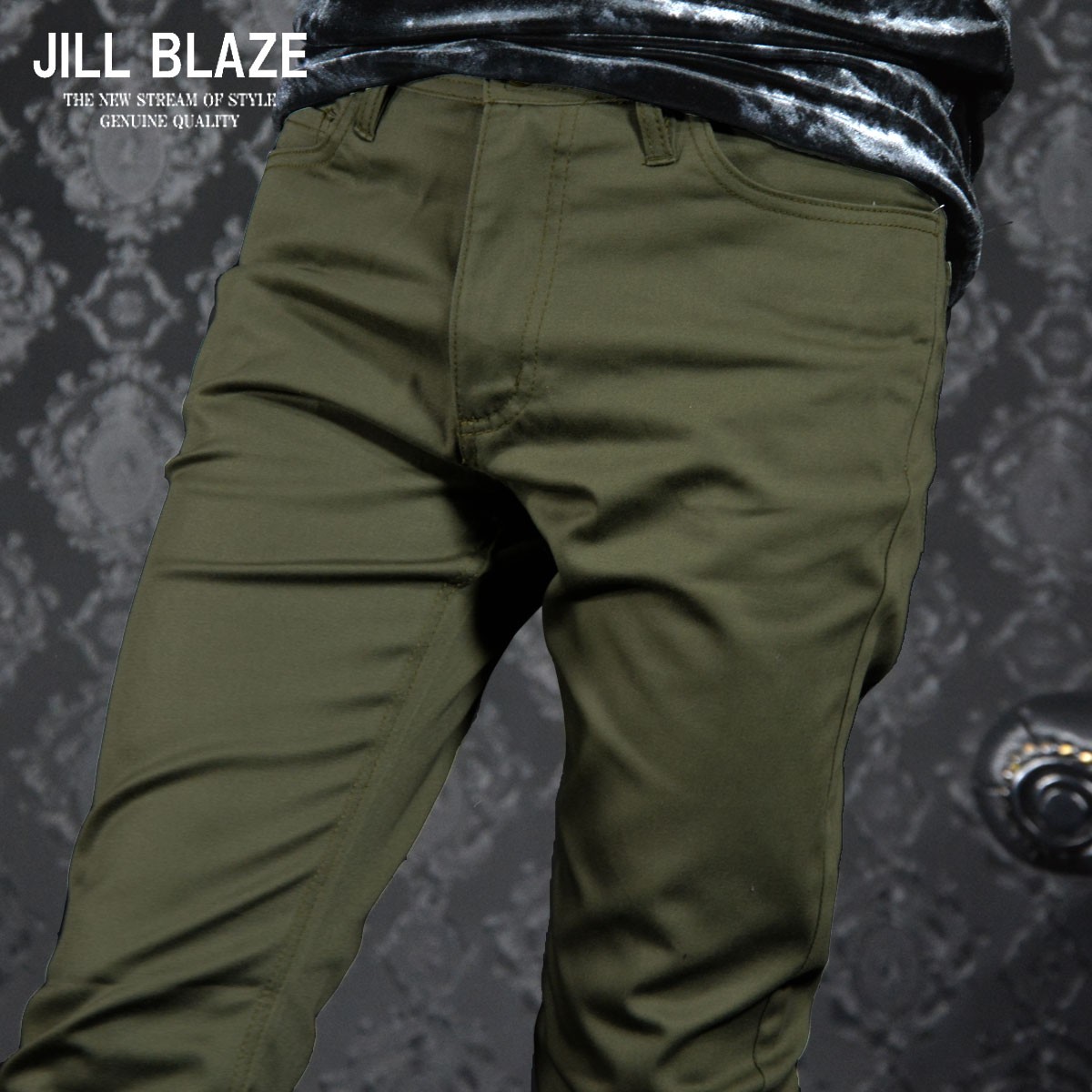 パンツ 無地 スリムフィット ストレッチ スキニー カラーパンツ メンズ(カーキ) jb42142