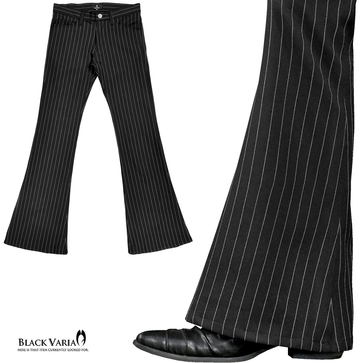 BlackVaria ベルボトム ピンストライプ ローライズ ブーツカット フレア ボトムス パンツ mens メンズ(ブラック黒ホワイト白) 222800