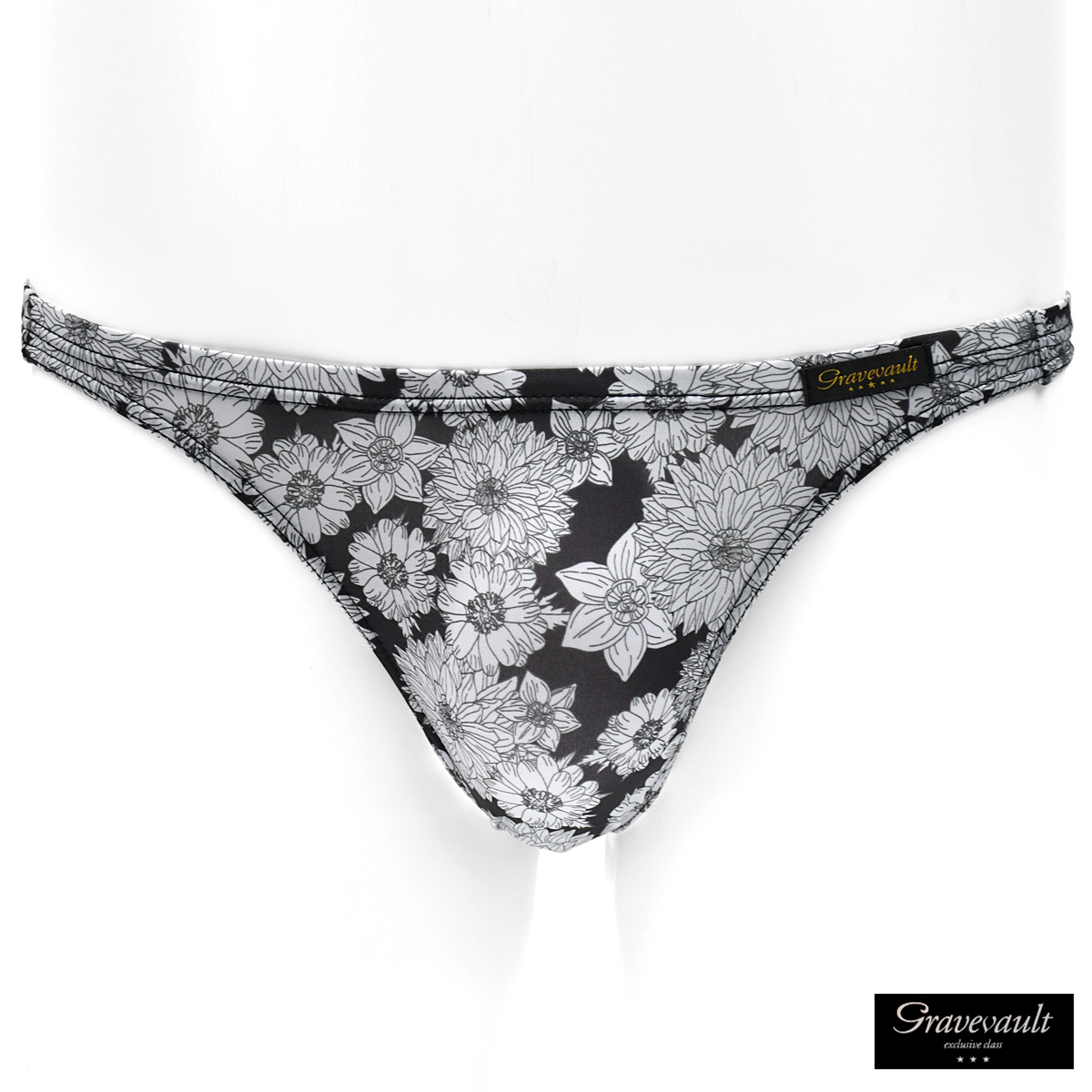 Gravevault Tバック ビキニ 花柄 パンツ 日本製 アンダーウェア 下着 メンズ(ブラック黒ライトグレー灰色) 3052226