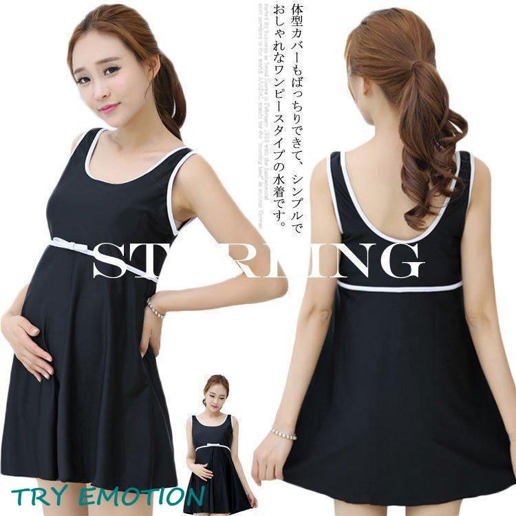 マタニティ ワンピース 水着 かわいい 夏 プール 海水浴 おしゃれ 大きいサイズ 妊婦服 無地 体型カバー 産後兼用 ラウンドネック ノー