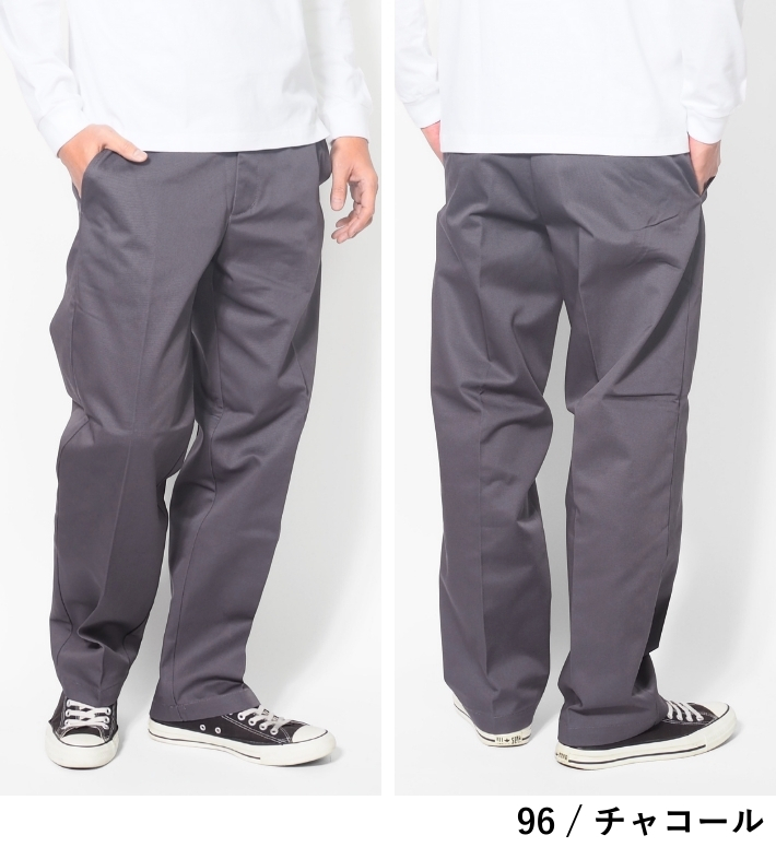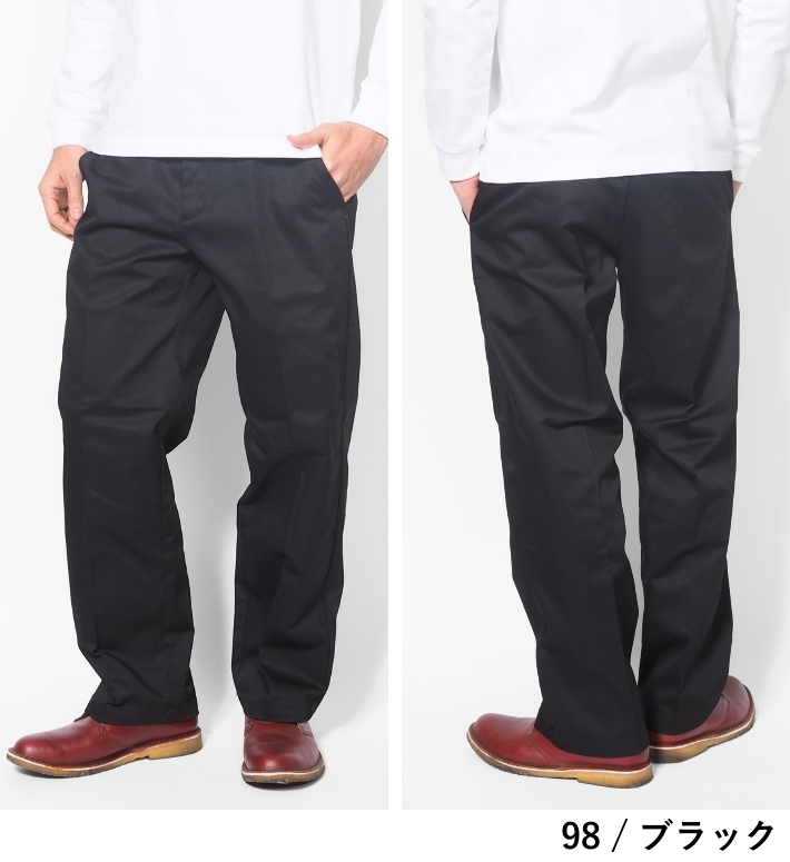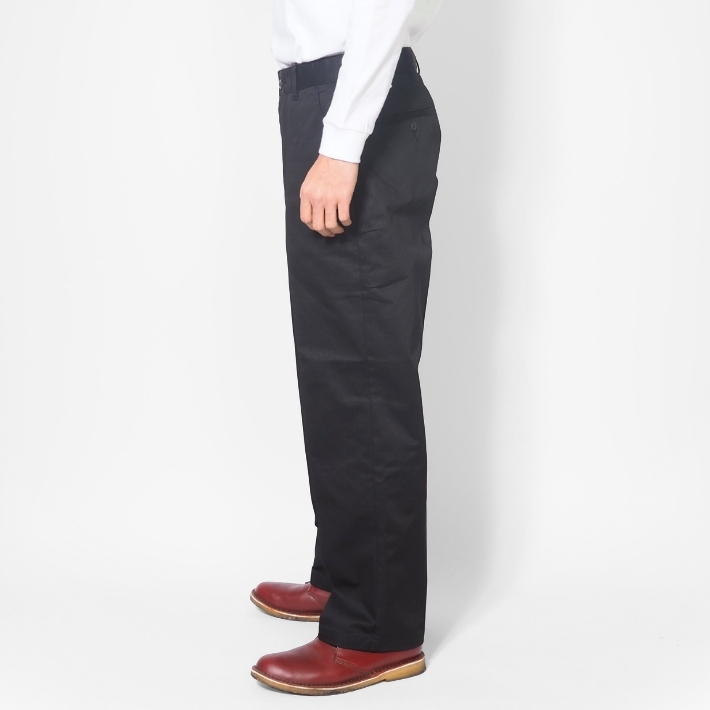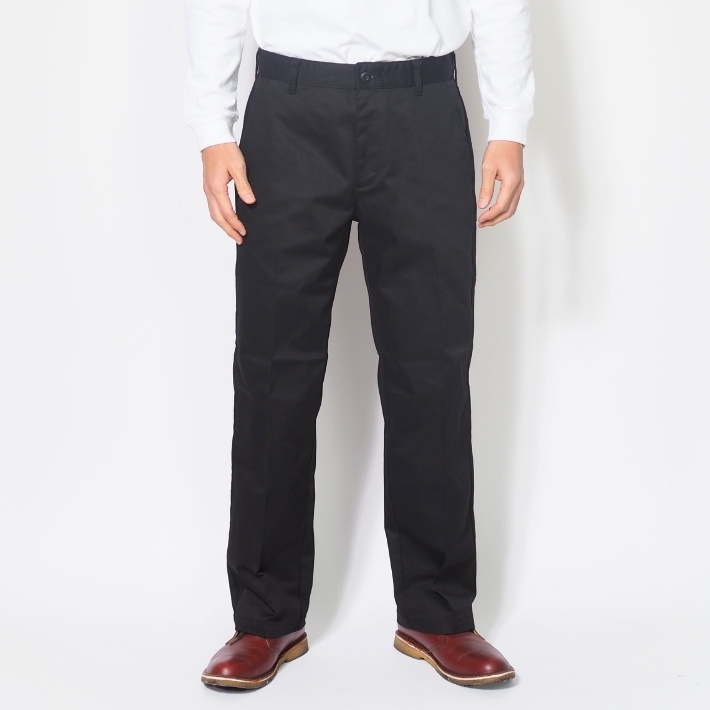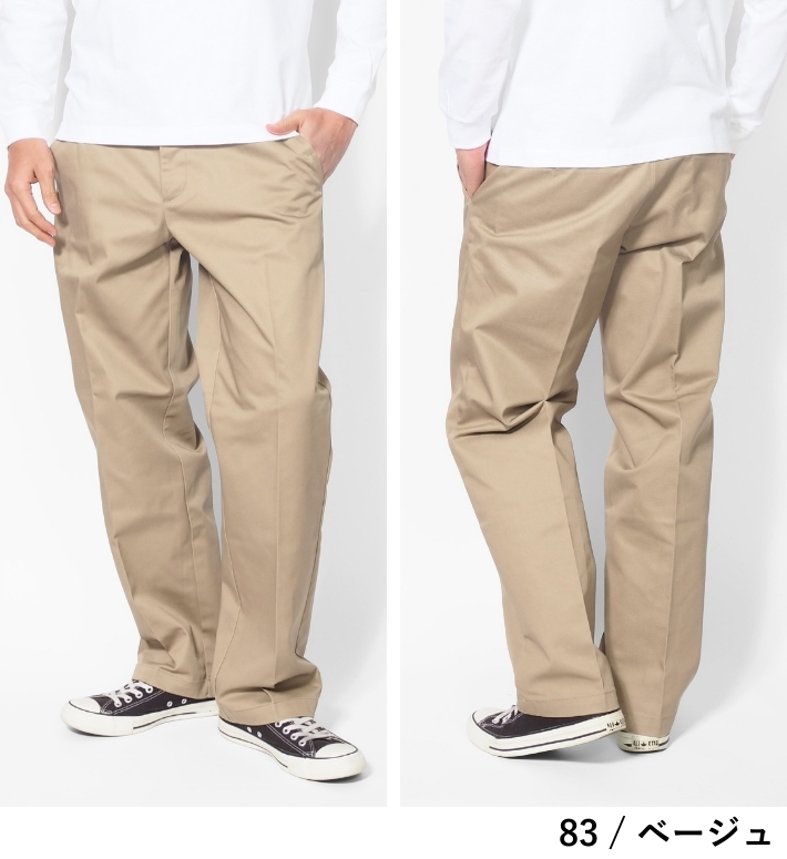 ディッキーズの874よりやや太い、適度にゆったりとしたシルエット。ワークウェア由来の無骨さを残しつつ、ファッション性を意識した都会的な着こなしにも馴染むデザインです。