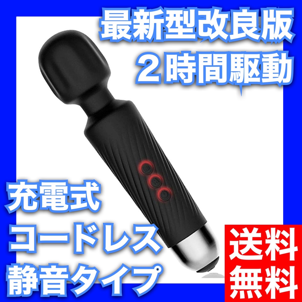 【2時間連続駆動】最新改良版となり、2時間連続稼働のタフなマッサージャーです。【静音&コンパクト】USB充電式でコンパクトで静か、持ち運びにも便利なので、旅行や出張など、いつでもどこでもお手軽にマッサージできます。【豊富な振動パターン】気軽に使えるコードレスタイプ!強力回転振動やバイブレーションなど、20種類の振動パターンと8種の振動速度が選択できます。【防水設計】防水仕様ですが完全な防水仕様ではございません。水洗いする場合はご注意の程よろしくお願いいたします。※完全防水ではないのでご注意ください。※お届けする商品は、生産ロッドによりLEDランプの色やボディのシリコンの模様が変わることがございます。※電源は、電源ボタンを2〜3秒ほど長押しするとオン・オフになります。 説明書は、同封されておりません。 商品内容は、こちらのページでご確認ください。※沖縄県には、リチウム電池が使用されてる為発送不可となります。 ご了承のほど宜しくお願い致します。※離島への発送について 送料お客様ご負担となり着払いとなります。 ご了承のほど宜しくお願い致します。
