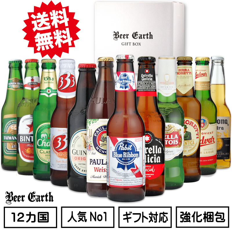 ビール ギフト 世界のビール クラフトビール 飲み比べ 12ヵ国 12本 ギフトセット 瓶ビールギフト 330ml×12本 おしゃれ お酒ギフト 御祝 出産内祝 誕生日 プレゼント 熨斗 ギフトシール 無料対応 BEER EARTH GIFT BOX