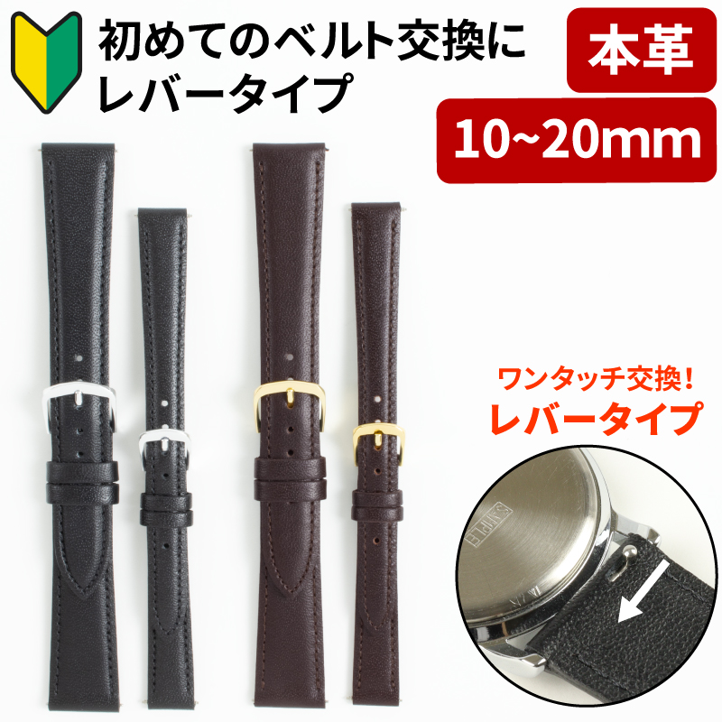 【レバータイプ】 時計ベルト 交換 本革 10mm 11mm 12mm 13mm 14mm 15mm 16mm 17mm 18mm 19mm 20mm レザー 牛革 腕時計 ベルト バンド クリッカー 049-LEVER