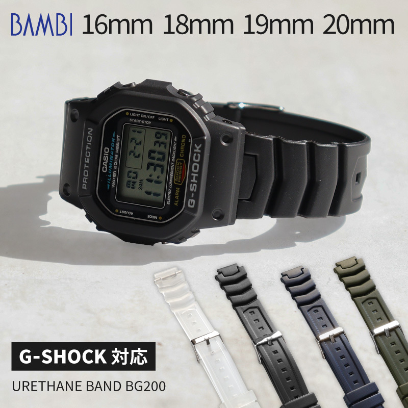ウレタン 腕時計ベルト 16mm 18mm 19mm 20mm 時計ベルト 交換 カシオ Gショック G-SHOCK ダイバー ベルト ラバー バンド スポーツ バンビ BGB200 男性 女性
