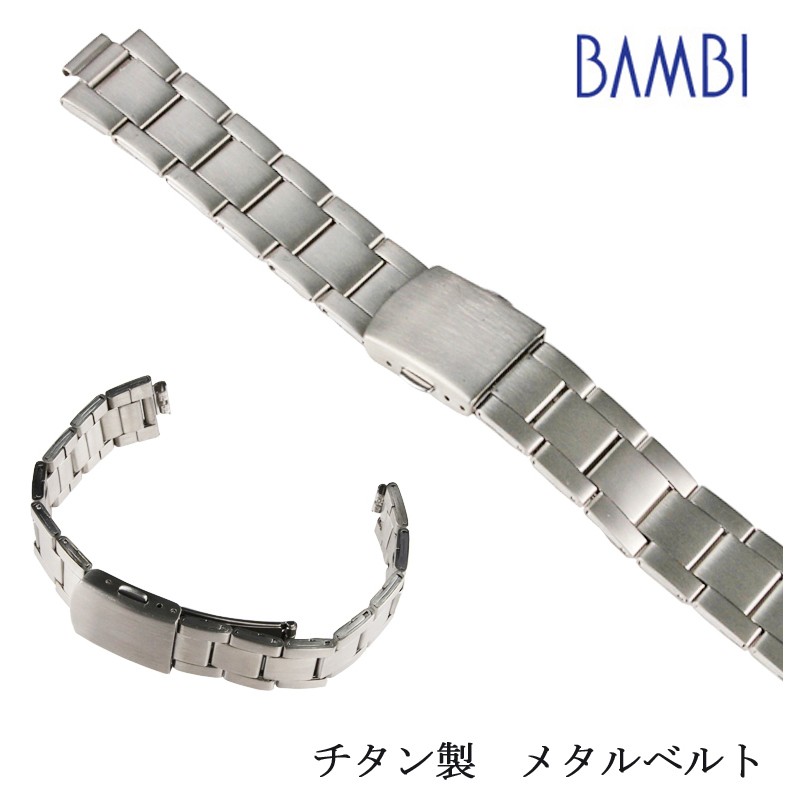 チタン 腕時計ベルト サテン 17mm 18mm 19mm 20mm 弓カン 対応 軽量 バンビ 時計ベルト メタル 金属 アレルギー 時計 ベルト 時計バンド シルバー BTBE1232N