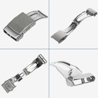 レザーベルト用の三つ折れ式バックル。時計ベルトのダメージを軽減し、腕時計の落下を防止することもできます。