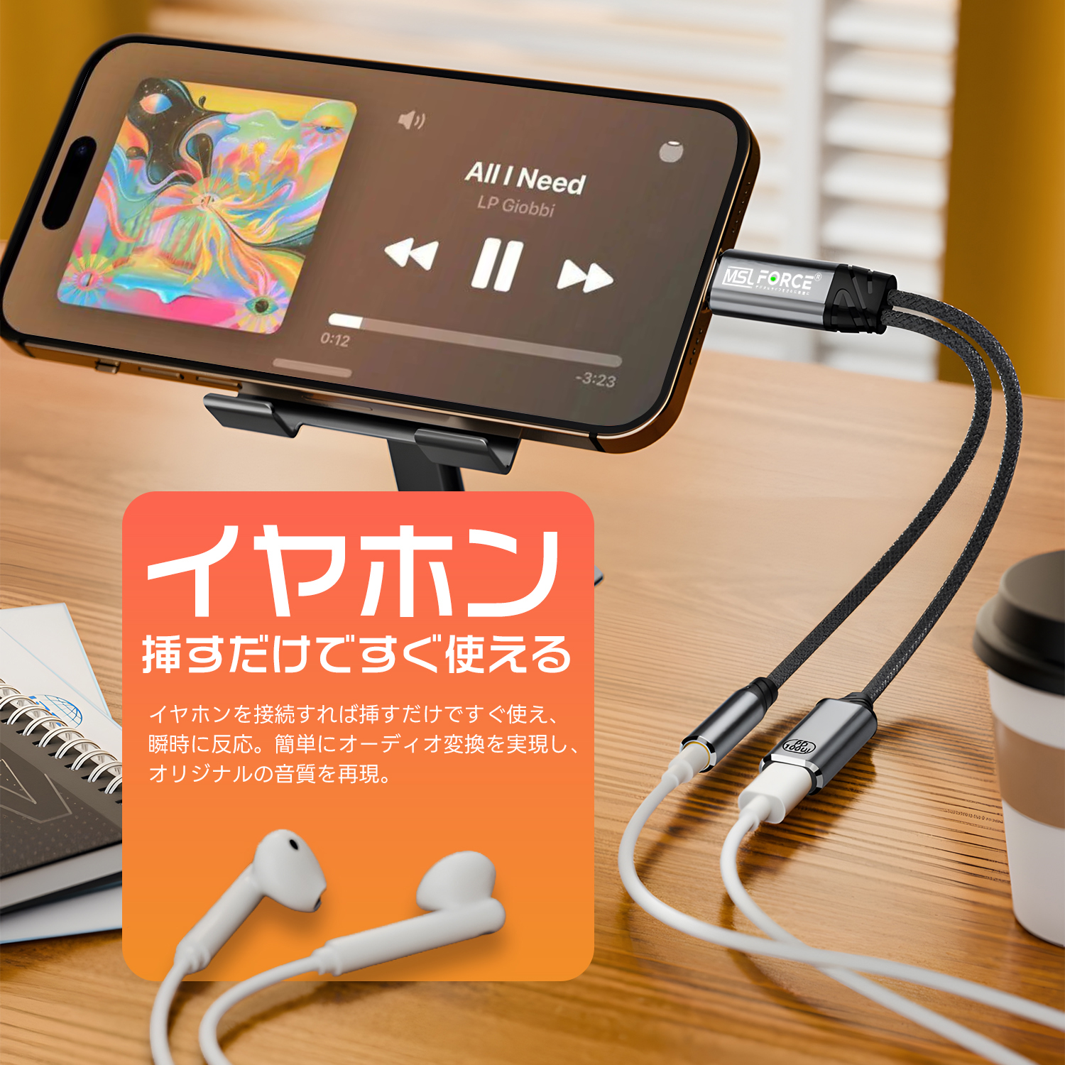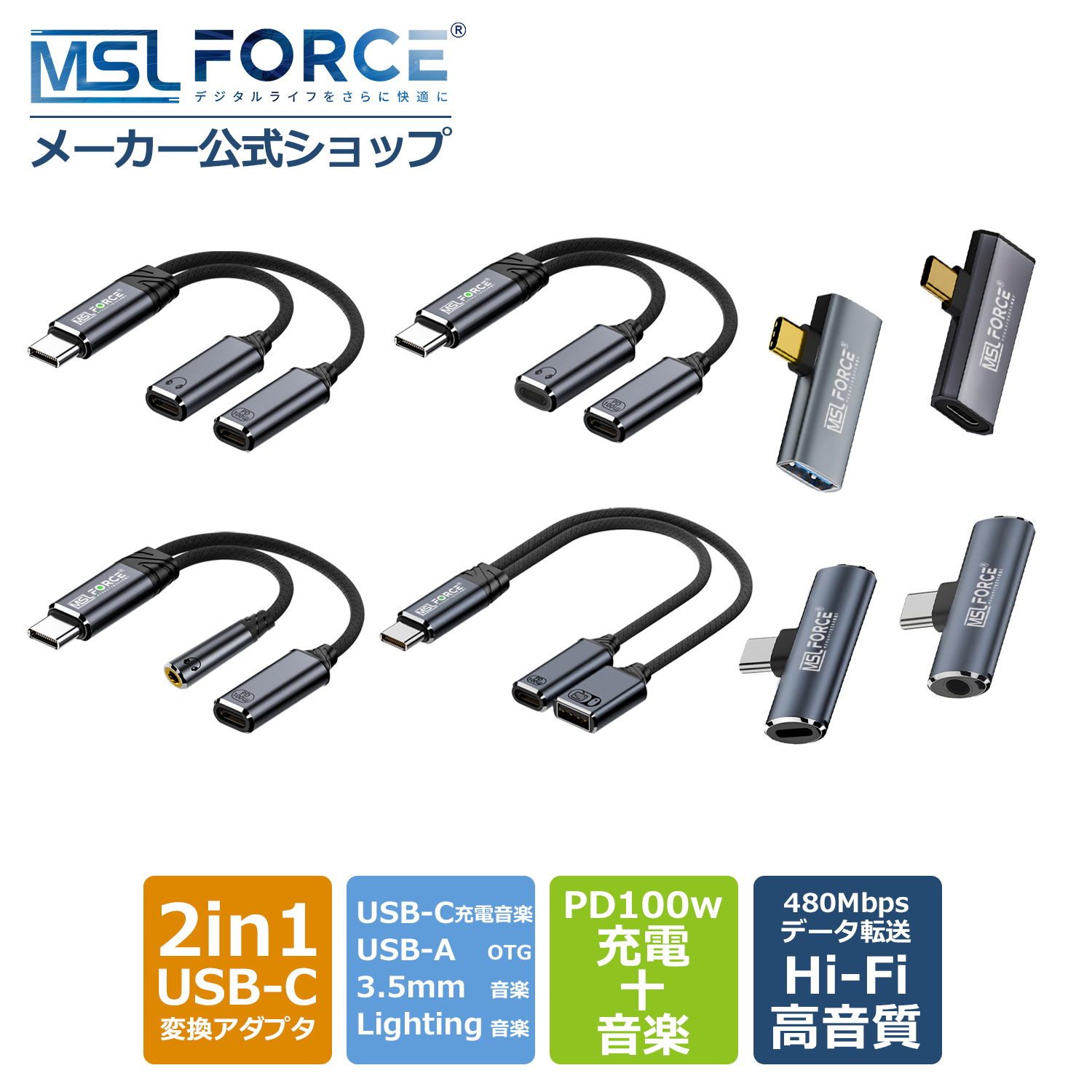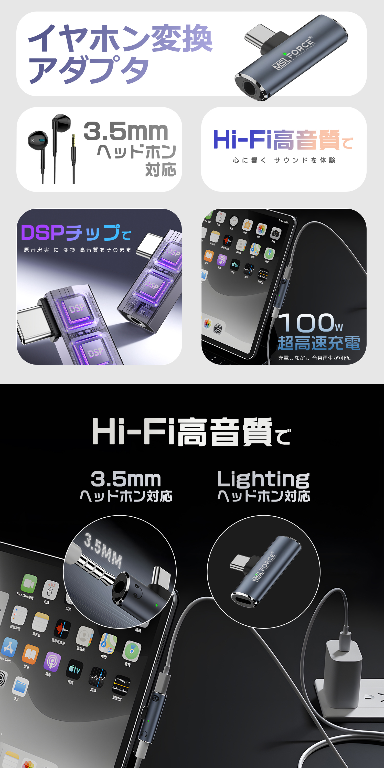 USB-C to 3.5mm/Lightning変換に対応し、幅広いデバイスで使用できます。3.5mm有線イヤホンとLightningイヤホンの両方に対応し、ストレート型・L字型デザインを選択可能です。