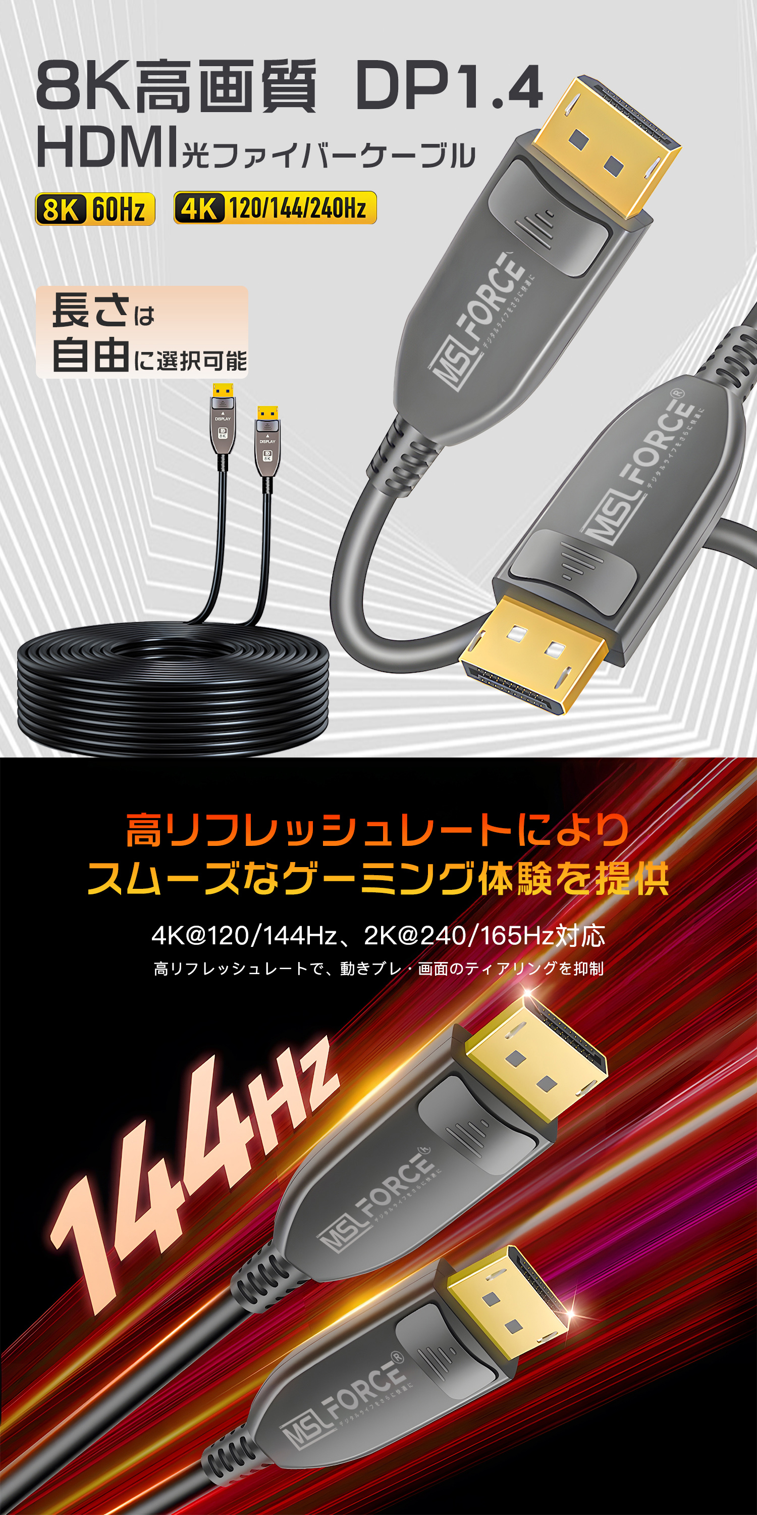 ■8K対応 光ファイバーHDMI 2.1ケーブル