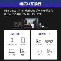 USB-Cポートを搭載したAndroidスマホやタブレット、iPad Pro、iPad mini、MacBookなどを簡単にRCAプラグの機器に接続できます。オーディオコンバーターやオーディオ変換ケーブルなど不要で、インターフェースが異なるデバイス間の接続を簡素化にするUSB-C to 2RCA オーディオケーブルです。