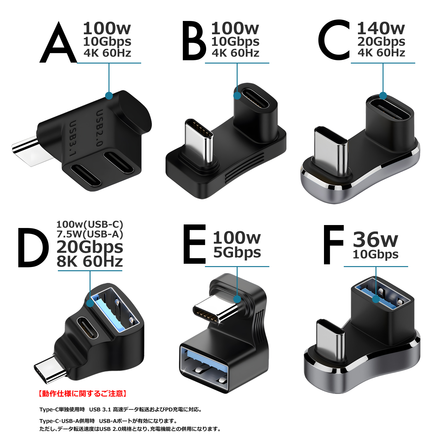 【USB-C to USB-C】 最大100W/140W(28V/5A)急速充電対応/転送速度:最大20Gbps 【USB-C to USB-A】 QCモード 最大100W/36W(12V/3A)充電対応/転送速度:最大10Gbps