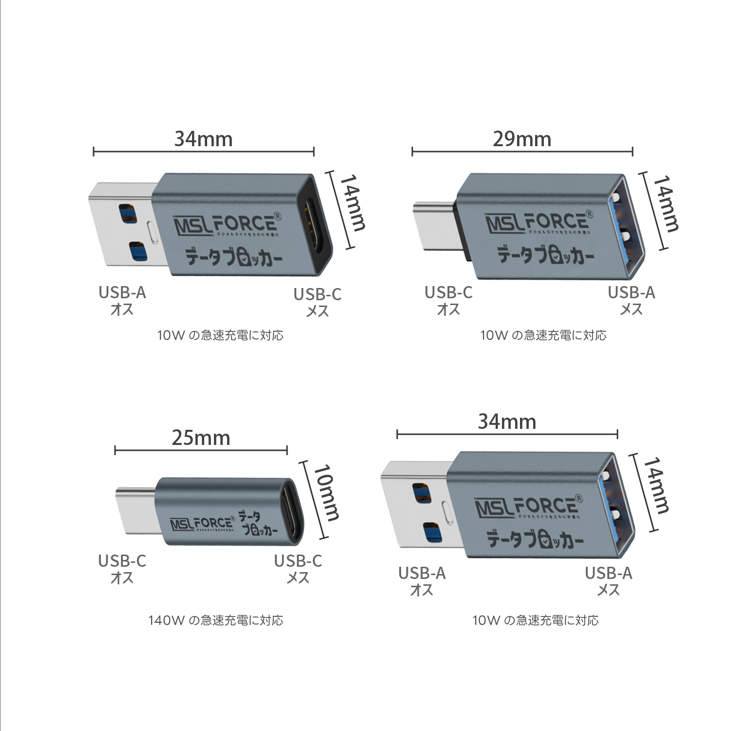 高い安全性だけでなく、パワーも妥協しません。Type-Cモデルでは最大140Wの急速充電に対応し、ノートPCなどの大容量デバイスも素早く充電。その他のモデルも5V 2A(10W)をサポートし、あらゆるシーンで活躍します。