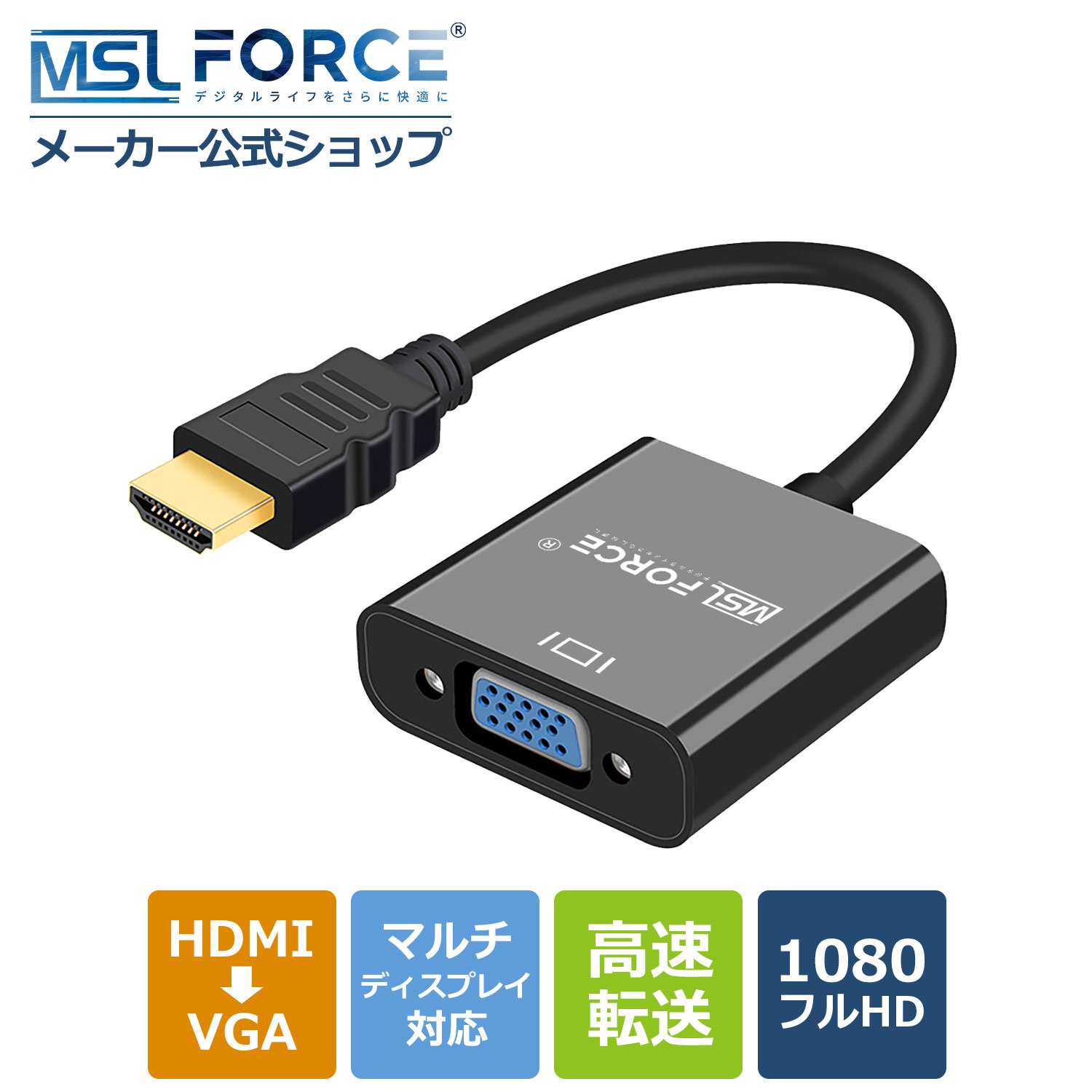 安心の日本企業 適格請求書発行可 送料無料 HDMI to VGA変換アダプター 24k金メッキ 中継 音声対応 オーディオ端子 給電ポート搭載 1080P解像度対応 Activeタイプ 変換ケーブル HDMIからVGA(オス-メス)