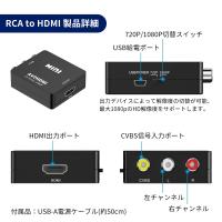 RCAコンポジット入力をHDMI出力に変換可能なコンバーターです。出力デバイスによって解像度の切り替えができ、最大1080pのHD解像度をサポートします。
