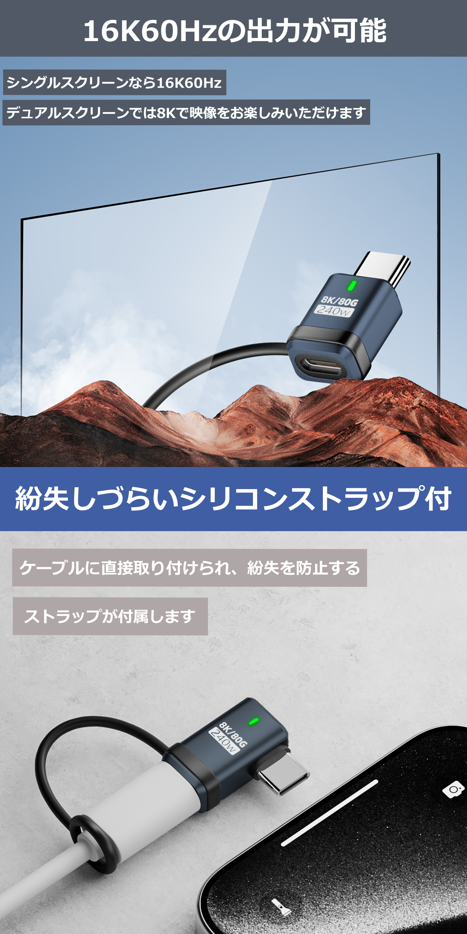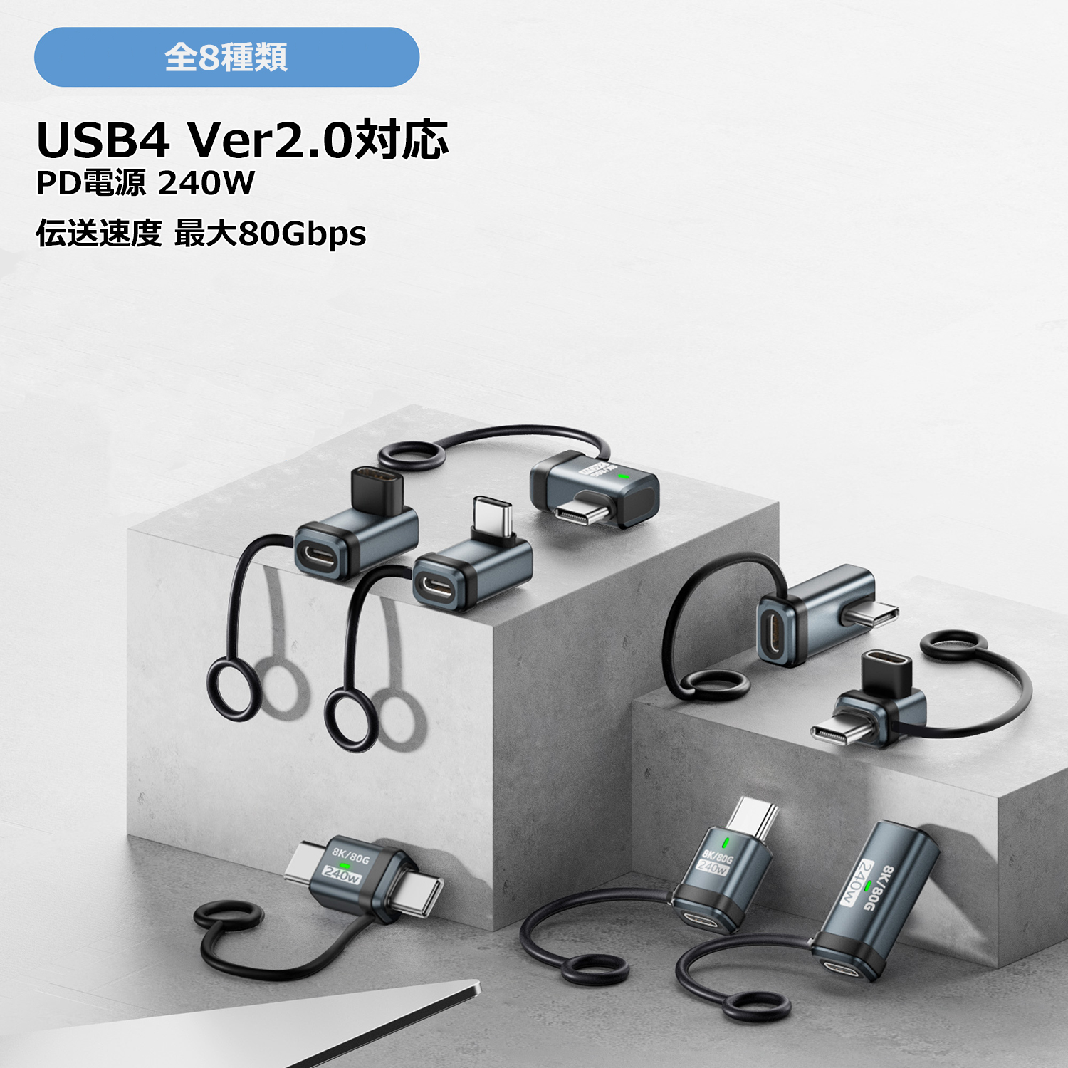 【39%OFF限定クーポン】適格請求書発行可 Thunderbolt5互換性あり Type-C アダプター 80Gbps PD240W 急速充電対応 8K60Hz L字 オスーメス TB5 送料無料 (39%)