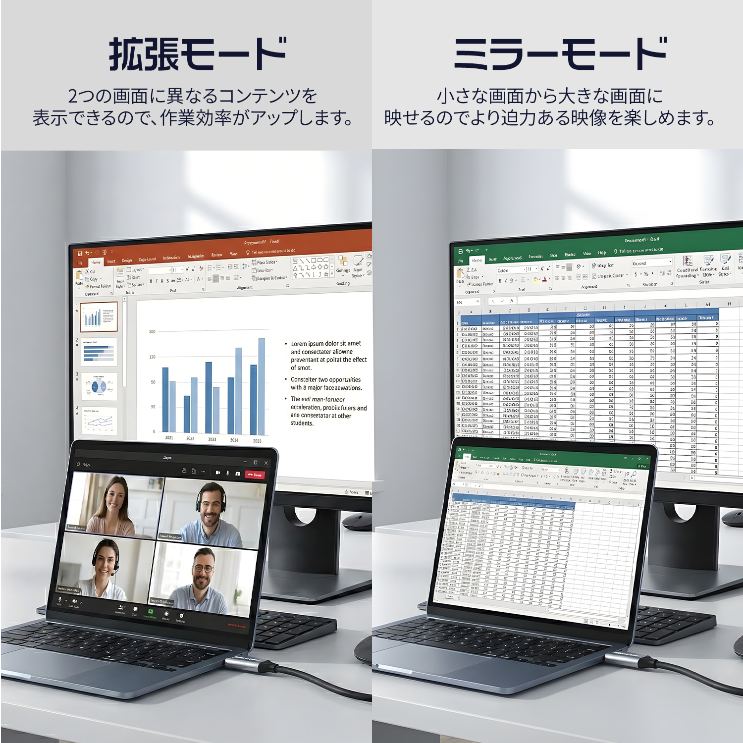 USB-C to Mini DisplayPort変換ケーブルは、鮮やかな4K@60Hz(3840×2160)の解像度をサポートし、優れた明るさ・コントラスト・カラーを体験できます。レーン毎の5.4Gbps(HBR2)データレートに対応し、スムーズで臨場感溢れる映像をお楽しみいただけます。