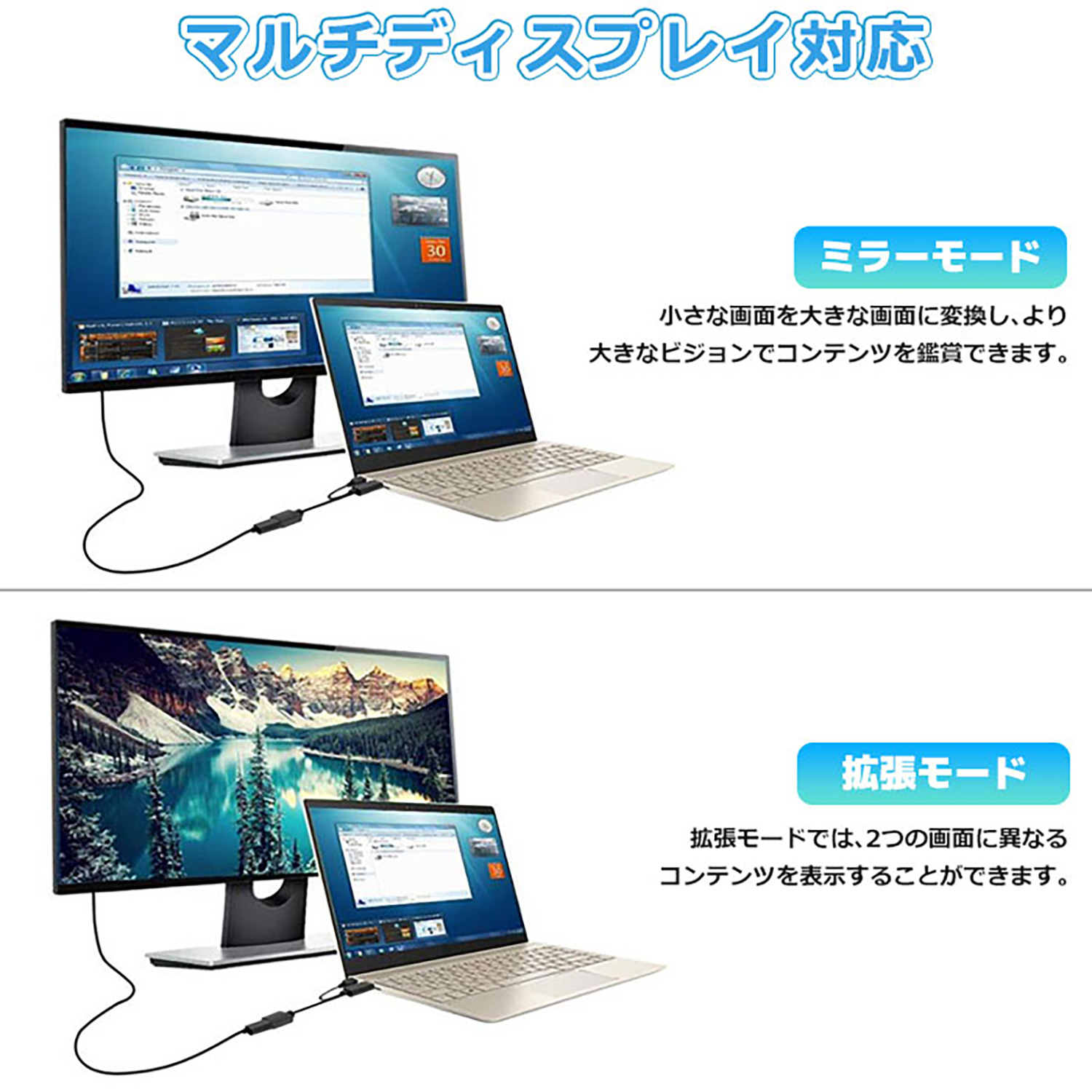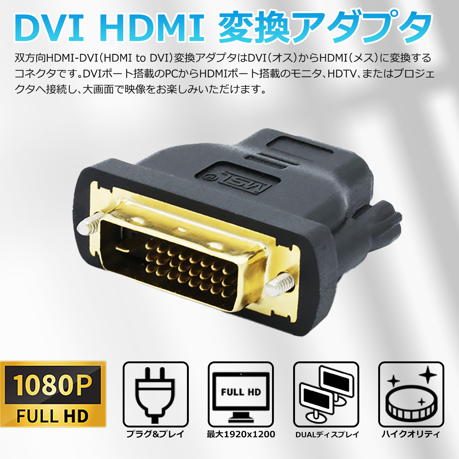 本商品は、最大フルHD1080P @ 60Hzまでの解像度を対応します。DVI端子を持つ液晶モニター、コンピューターモニター、HDTV、または大画面プロジェクターと接続して、ハイビジョンな動画やゲームまたは画像を楽しむことができます。