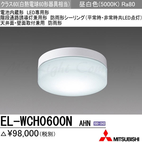 三菱電機 EL-WCH0600N AHN 後継品「EL-WCH0601N/W AHN」にてお届け LED非常用照明器具 階段灯兼用 防雨形 天井・壁面取付 昼白色 30分間点灯形 FCL20形器具相当
