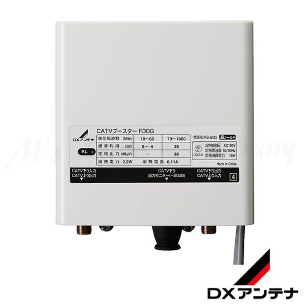 DXアンテナ F30G CATVブースター 30dB形上りパス 戸建受信用ブースター(SDU) 屋外屋内共用 1000MHz帯双方向 電源コード長1.0m 『F30G』