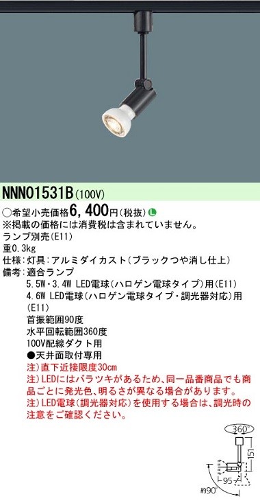 パナソニック NNN01531B LEDスポットライト ライティングレール(配線ダクト)用 E11口金 ランプ別売