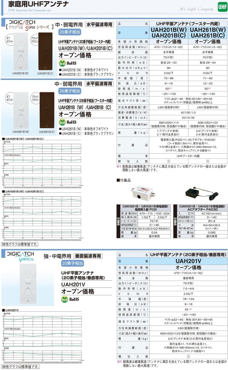 DXアンテナ UAH261B(C) 家庭用UHFアンテナ UHF平面アンテナ 26素子相当 ブースター内蔵 水平偏波用 中・弱電界用 利得26〜34dB ブラックブラウン 『UAH261BC』