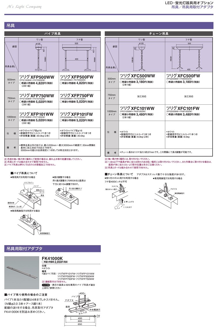 パナソニック XFC101FW LED・蛍光灯器具用オプション チェーン吊具 フナ型 高さ1000mmタイプ