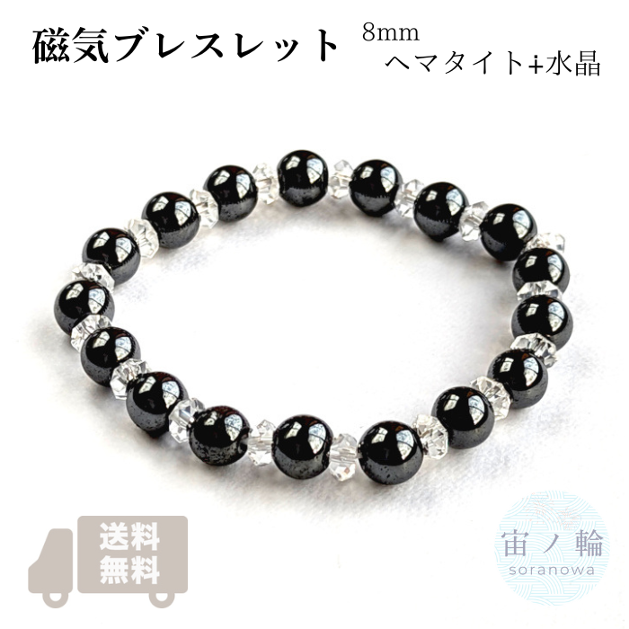 磁気ブレスレット 天然石 8mmヘマタイト+水晶 健康ブレスレット 睡眠改善 血行促進 父の日