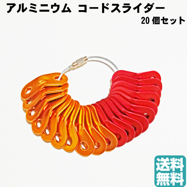 コードスライダー アルミ自在金具 20個セット ロープテンショナー ロープ長さ調整 テント ロープ張り アウトドアキャンプ グッズ