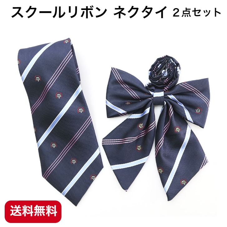 スクールリボン ネクタイ2点セット 女子 制服リボン 学生服 紺色 中学生 高校生リボン