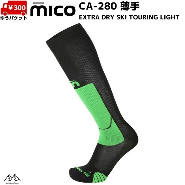 ミコ 280 薄手 スキーソックス ブラック グリーン mico EXTRA DRY SKI TOURING LIGHT 280 155