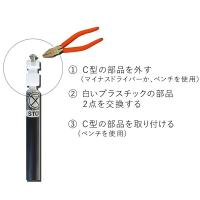 回転固定プラグ、上部C型金具、下部プラスチック台 (プラスチック部品2個、金具1個)一式をお届けします。