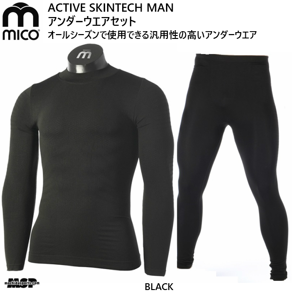 ミコ アンダーウエアセット ブラック 超速乾 mico ACTIVE SKINTECH MAN IN1432 IN1432-007set
