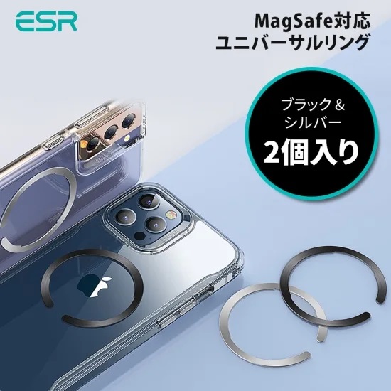 国内正規品 ESR マグネットリング HaloLock MagSafe対応 メタル ユニバーサルリング ブラック&シルバー 2個入り
