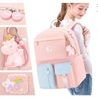 可愛いデザインとパステルカラーが大好きな、小学生のお子様におすすめのガールズリュックです。鈴のついたユニコーンチャーム付きでお出かけが楽しくなります。ショルダーずり落ち防止のチェストストラップを付ければさらに快適。いざという時に、引っ張るだけで大音量130dBのブザーが鳴る防犯ブザーもついて、大切なお子様を守ります。