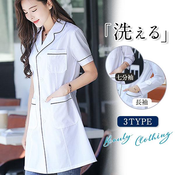 ナース服 白衣 レディース 女性用 半袖 7分袖 長袖 制服 看護師 介護士 病院 無地 ホワイト 医者 シンプル 快適 春秋 夏物 洗える