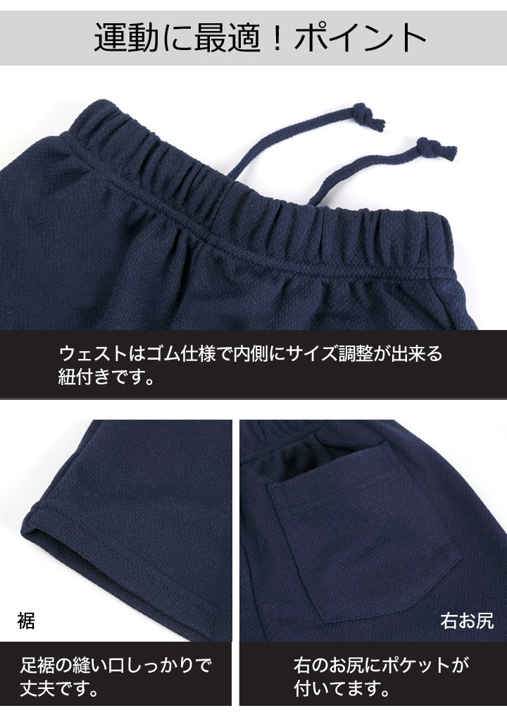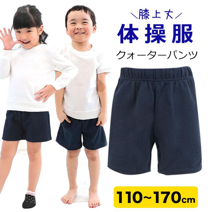 体操服 体操着 クォーターパンツ体操パンツ 体操ズボン ジャージ生地 膝上 もも丈 体育 スポーツ 紺 ネイビー ハーフパンツ 小学校