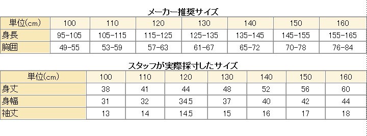 ※身長胸囲はタグに記載されているサイズ