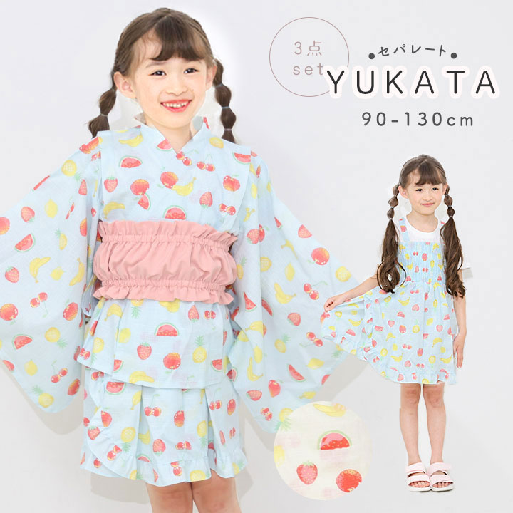 | 浴衣 子供 セパレート 上下セット 女の子 作り帯 浴衣3点セット サンドレス ワンピース ひざ丈 浴衣ドレス 90cm 100cm 110cm 120cm 130cm 95cm 簡単 花火大会 夏祭り 夏 幼稚園 保育園 小学生 果物 かわいい フリル |