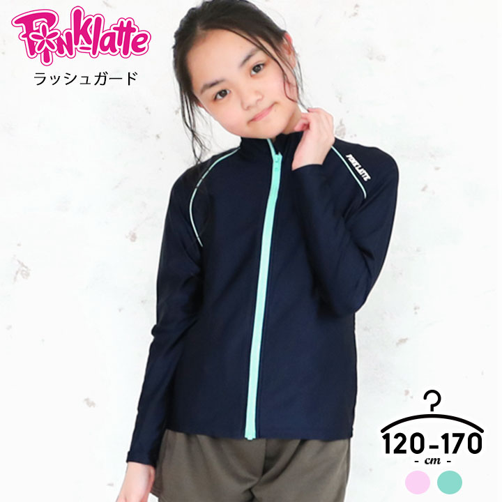 ラッシュガード キッズ 長袖 ピンクラテ スクール水着 女子 ジュニア 紺 体型カバー 120 130 140 150 160 170 UVカット プール 夏 水泳 小学校 授業 スイム