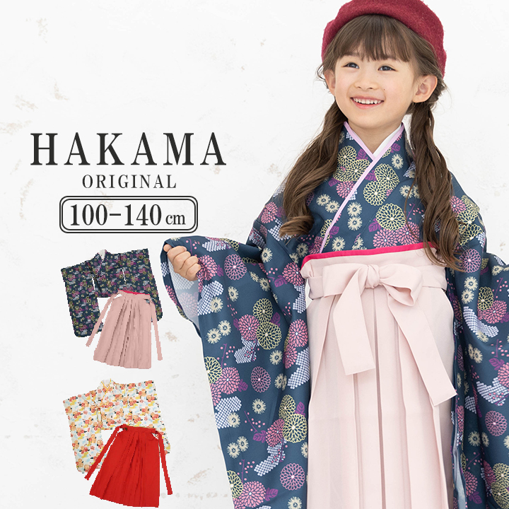 | 《当店オリジナル》袴上下2点セット 布帛(ふはく)を使った高級感のある手触りの袴上下セット。 入学式などフォーマルなイベントにピッタリ。 上衣は両脇の紐を結ぶだけで、 袴もウエストがゴムなっているので、一人でお着替えもかんたんです。 後ろ腰部分には枕もあるので、大人顔負けの袴スタイルに。 柄や配色にもこだわった1枚です。 |