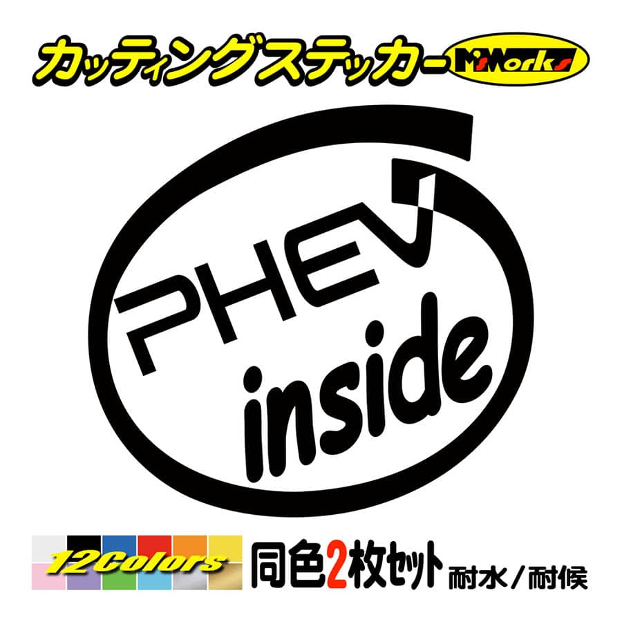 車 給油口 ステッカー PHEV inside (2枚1セット)(MITSUBISHI・ミツビシ) カッティングステッカー インサイド ガラス おもしろ ワンポイント