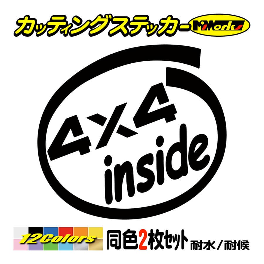 車 おもしろ ステッカー 4×4 inside (2枚1セット) カッティングステッカー 給油口 インサイド リア サイドガラス ワンポイント カスタム 防水耐水