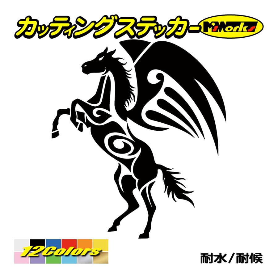 車 バイク ステッカー 幻獣 ペガサス トライバル ・7 カッティングステッカー かっこいい タンク カウル ヘルメット サイド リアガラス
