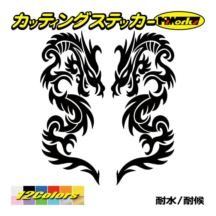 ステッカー トライバル ドラゴン doragon 龍 2・7(左右セット) カッティングステッカー 車 バイク ヘルメット タンク スノーボード かっこいい