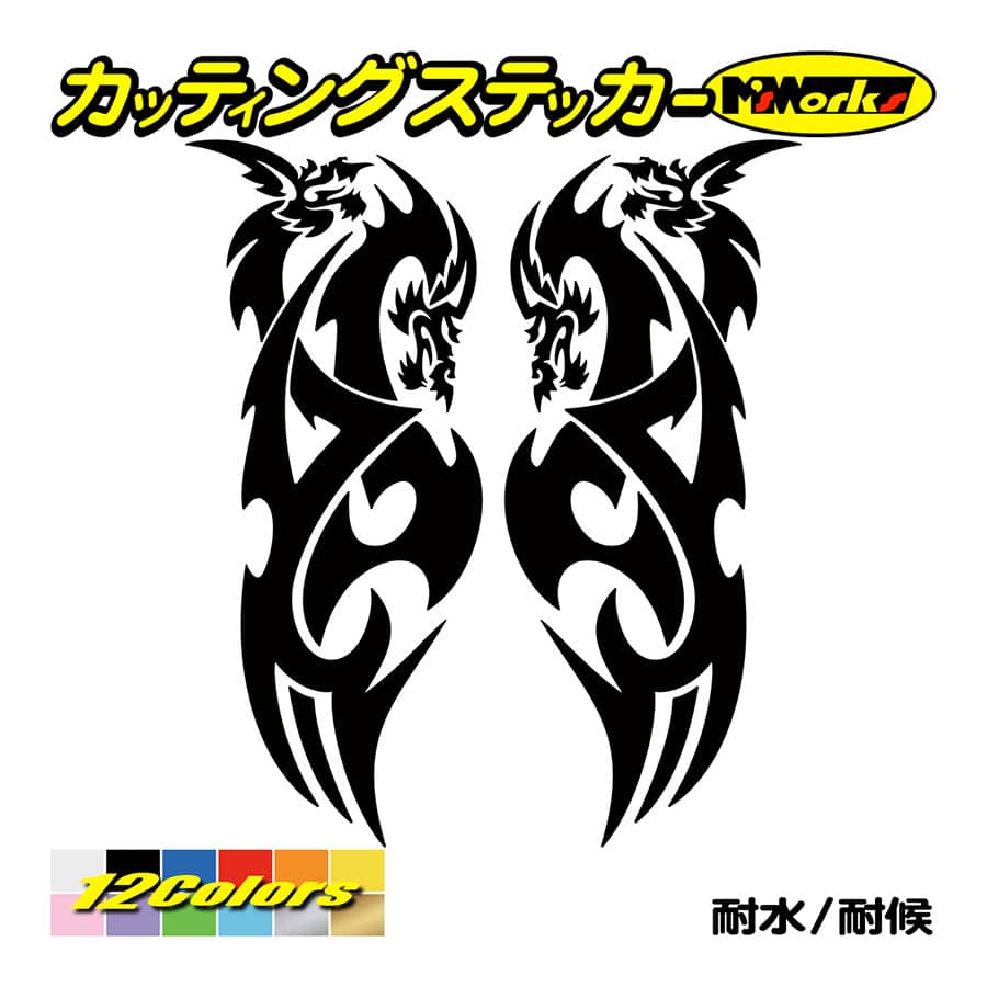 車 バイク ステッカー トライバル ドラゴン doragon 龍 2・8(左右セット) カッティングステッカー ヘルメット タンク カウル スキー かっこいい