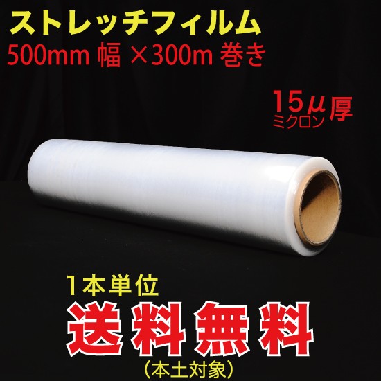 ストレッチフィルム 500mm×300m巻 送料無料 1本単位 (S500300)