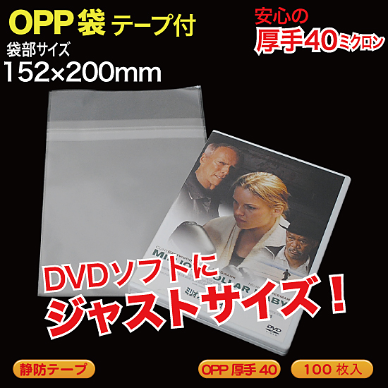 OPP袋(透明)静防テープ付 厚口0.04(40ミクロン)152×199mm DVDケース用 100枚入 (PS-OP40SD2)