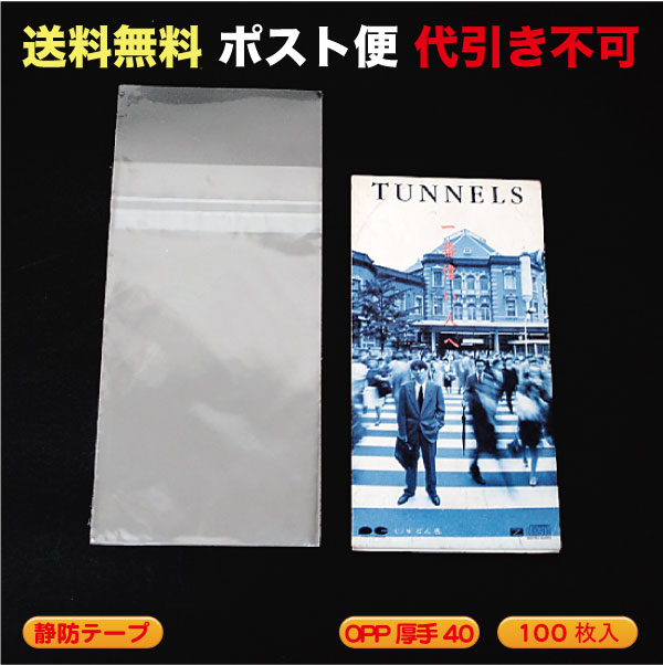 OPP袋 #40 静防テープ付(8cmCDシングルなど) ポスト便 送料無料 100枚入 (CD-OP8S_M)