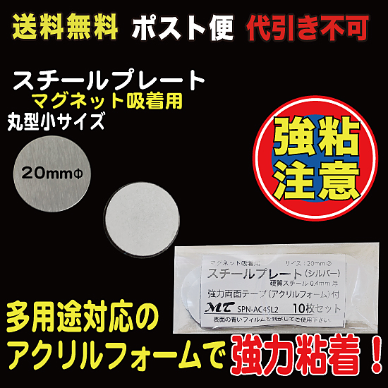 スチールプレート 丸型20mmΦ(マグネット吸着用)シルバー ポスト便 送料無料 10枚入 AC04M